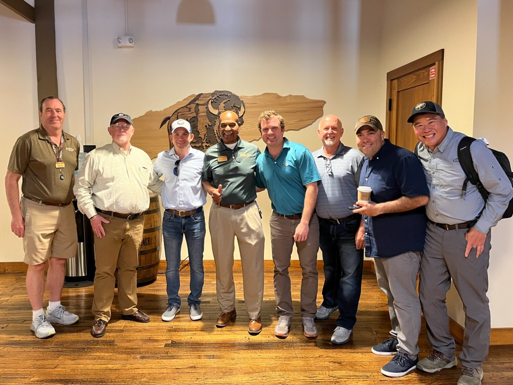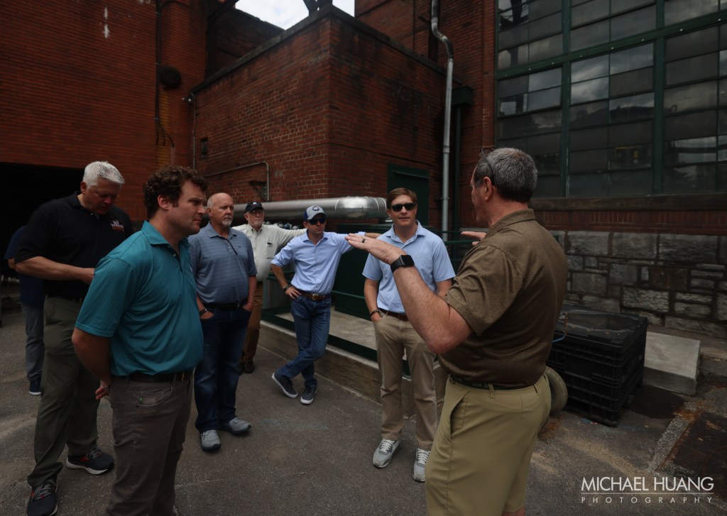 I was lucky enough to be asked to join the group tasked with helping to choose this year’s barrel of Blanton’s. Here we are before the tour with guide Jimmy on the left, and third-generation Buffalo Trace employee and Bourbon Hall of Famer Freddie Johnson in the middle.